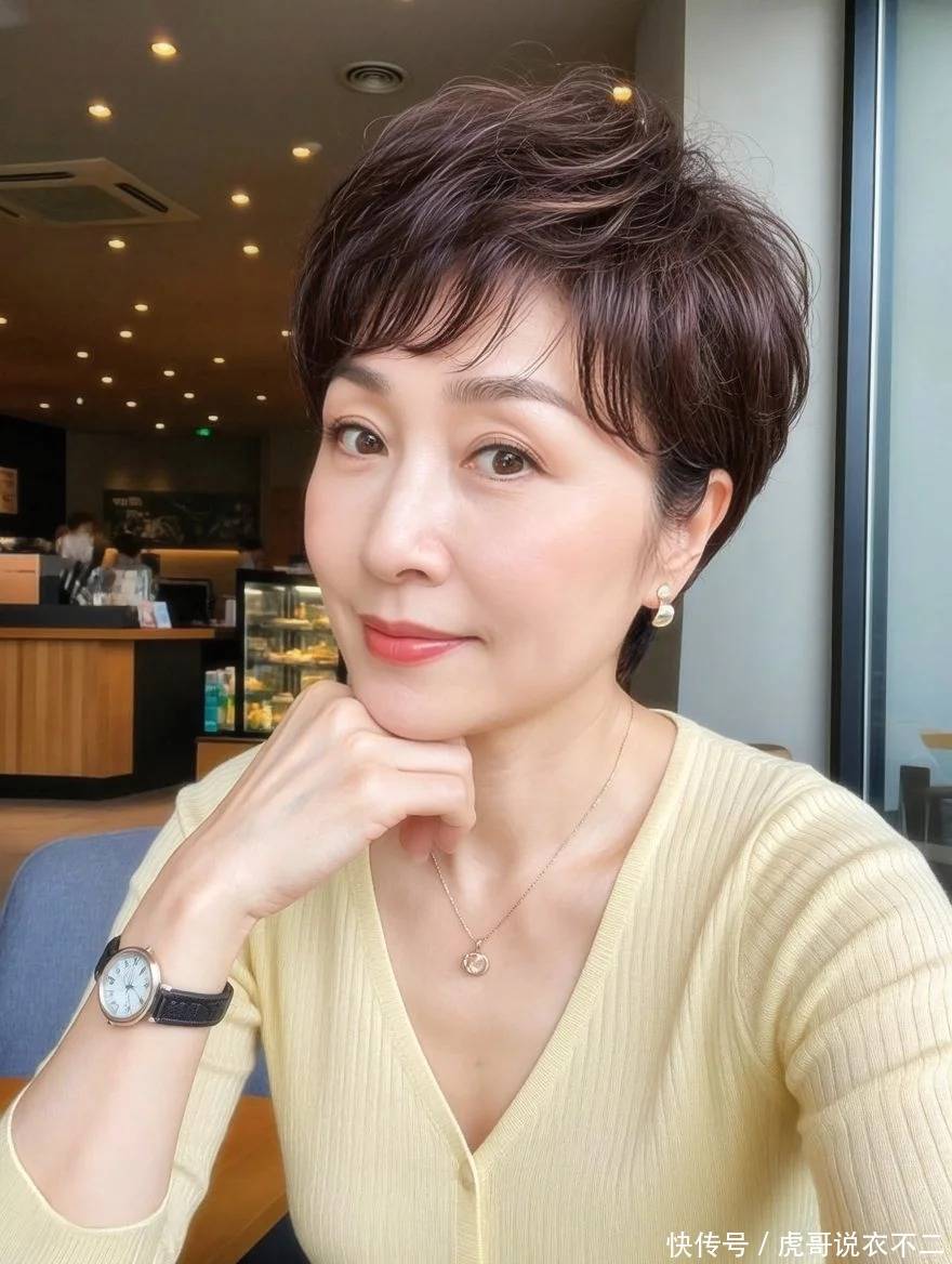 对于成熟的大龄女性来讲,相比于长发,短发会更显年轻,首先短发会显得更加干净利落,而且相对来说短发也更好打理,相信很多人都有过相关经验,大多数长发更容易干枯分叉,那是因为营养输送不够引起,而对于上了年纪的女性来说,无论是从哪个方面来讲,短发都更适合。